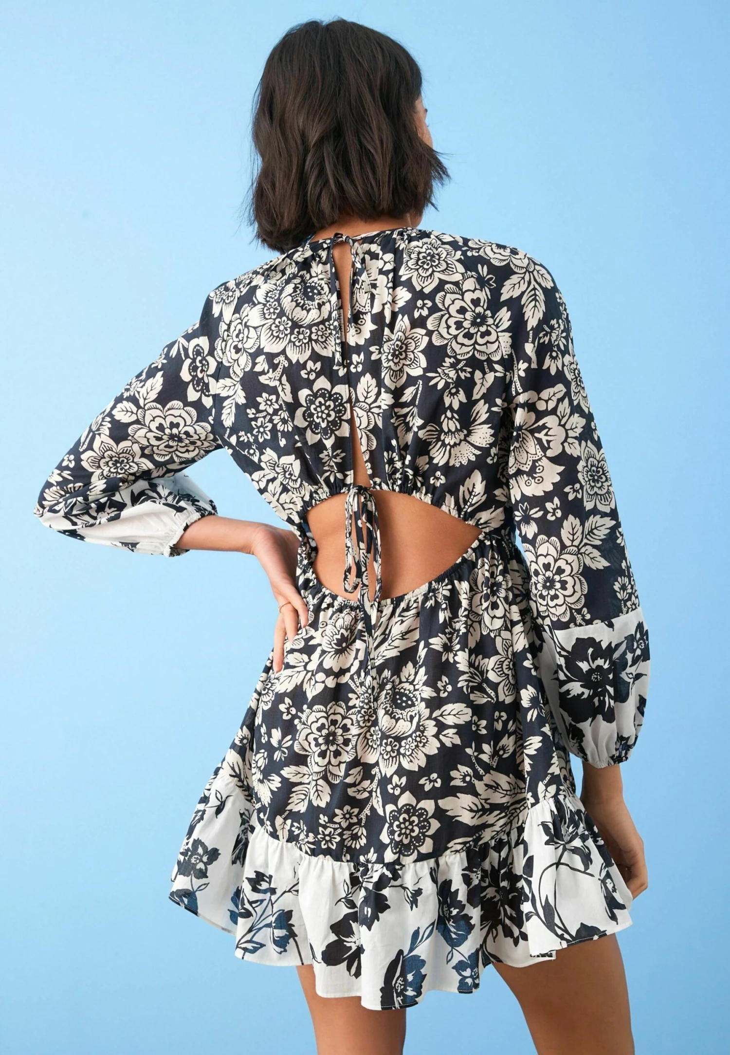 Next Long Sleeve Mini Standard – Jurk – Black White Floral